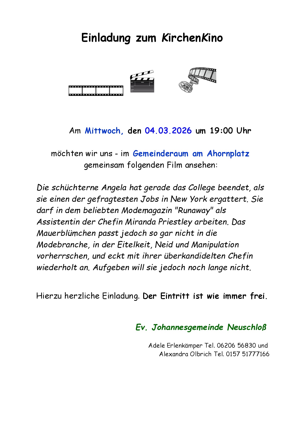 04.03. Mittwoch 19:00 Kirchenkino Näheres